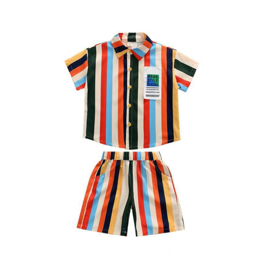 Unique Girl's Taffeta Silk Striped Short Sleeve V Neck Dress