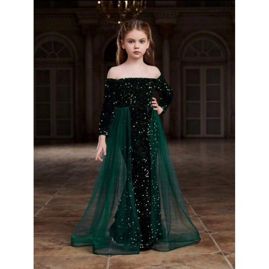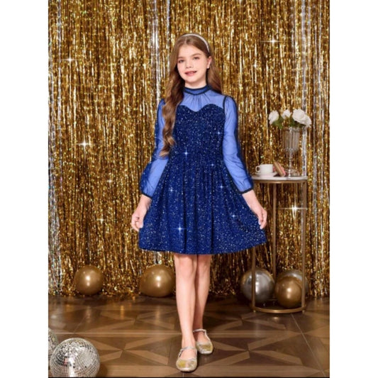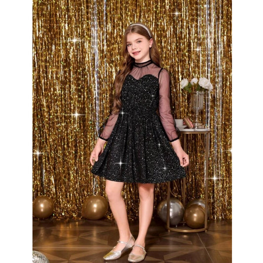 Comfy Girl's Fancy Net Net Sleeve Less Round Neck Dress