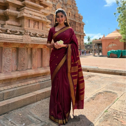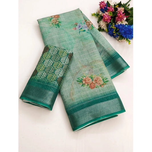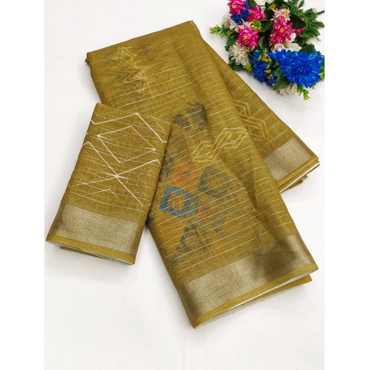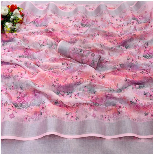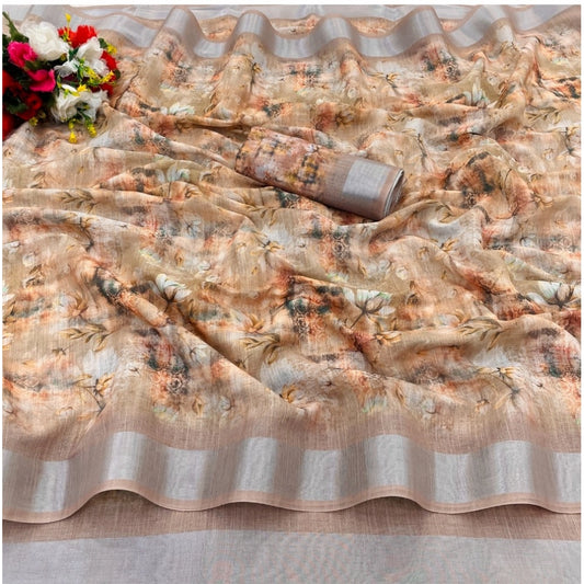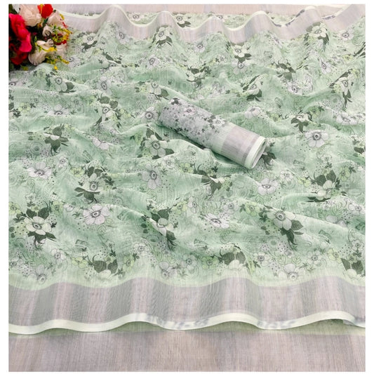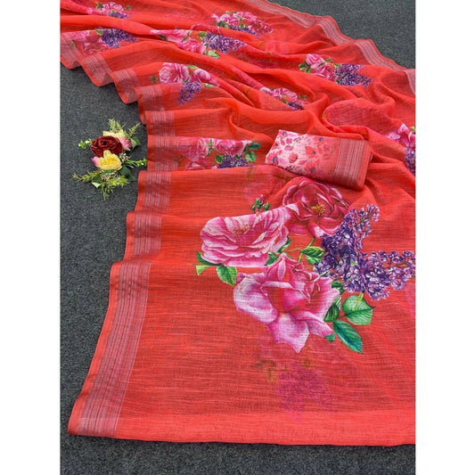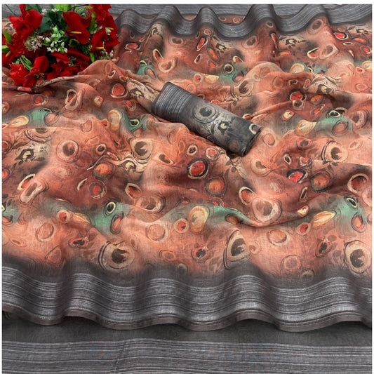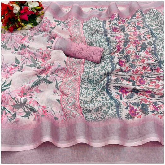 Traditional Women's Linen Cotton Printed Saree With Blouse Piece