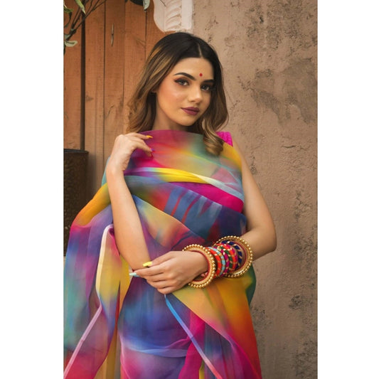 Royal Women's Georgette Printed Saree With Blouse Piece