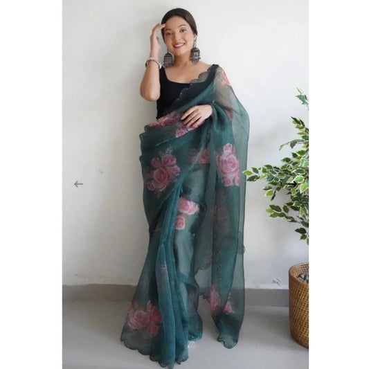 Sassy Women's Soft Lichi Silk Printed Saree With Blouse Piece