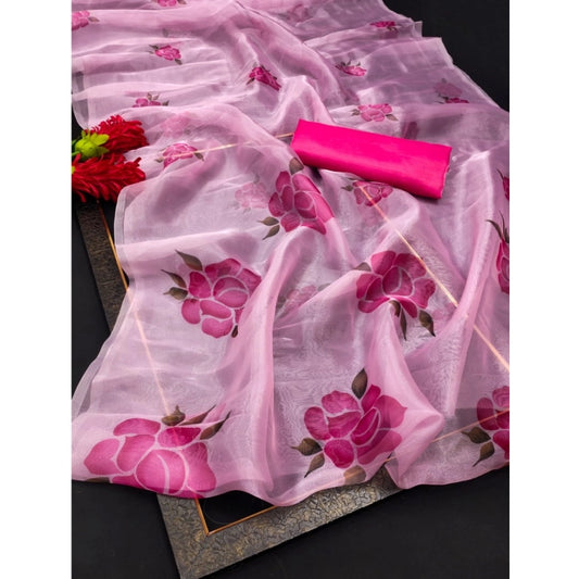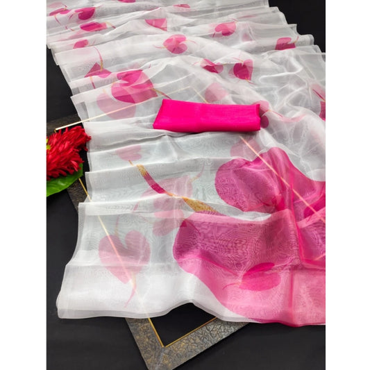 Luxurious Women's Soft Lichi Silk Printed Saree With Blouse Piece