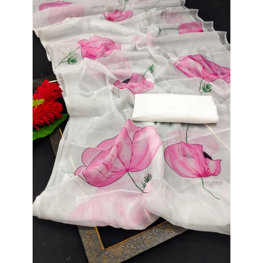 Elite Women's Chiffon Printed Saree With Blouse Piece