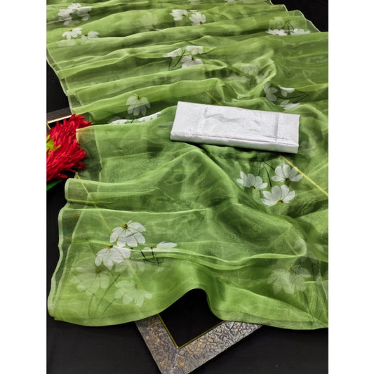Sophisticated Women's Soft Lichi Silk Printed Saree With Blouse Piece
