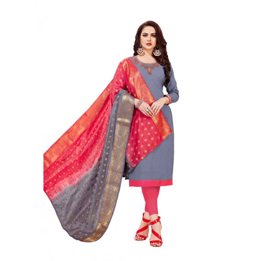 Trendy Chanderi Unstitched Salwar Suit Dress Material With Dupatta