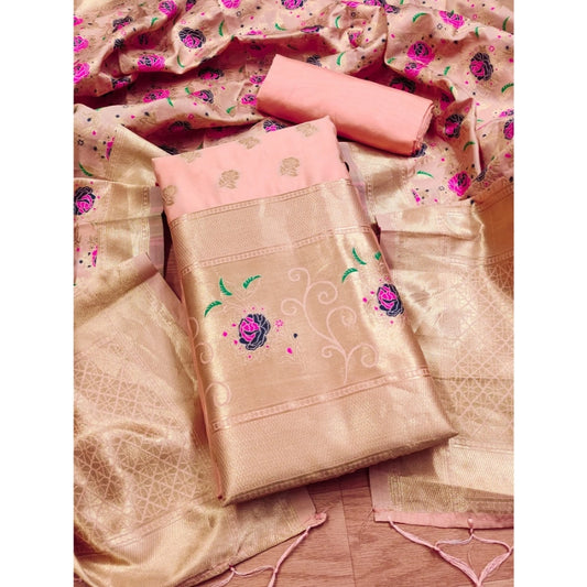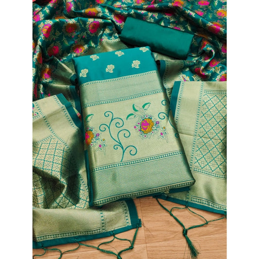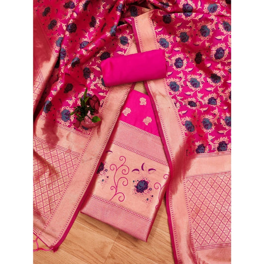 Ethnic Women's Banarasi Silk Printed Unstitched Salwar Suit Dress Material With Dupatta