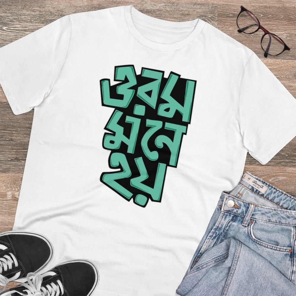 Men's PC Cotton Bengali Designs Printed T Shirt (Color: White, Thread Count: 180GSM)