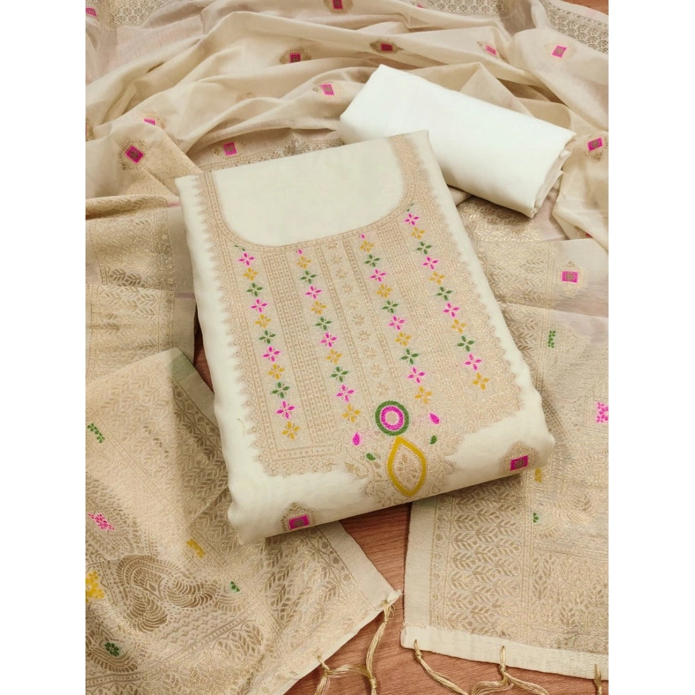 Women's Banarasi Silk Printed Unstitched Salwar Suit Material With Dupatta