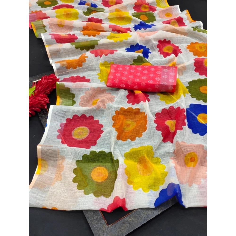 Women's Cotton Linen Woven Design Saree With Unstitched Blouse 5.5Mtr