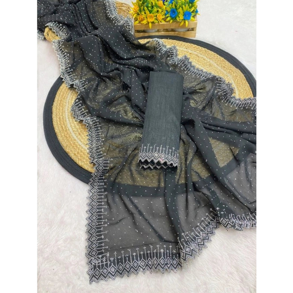 Women's Georgette Stone Work Saree With Unstitched Blouse 5.5Mtr