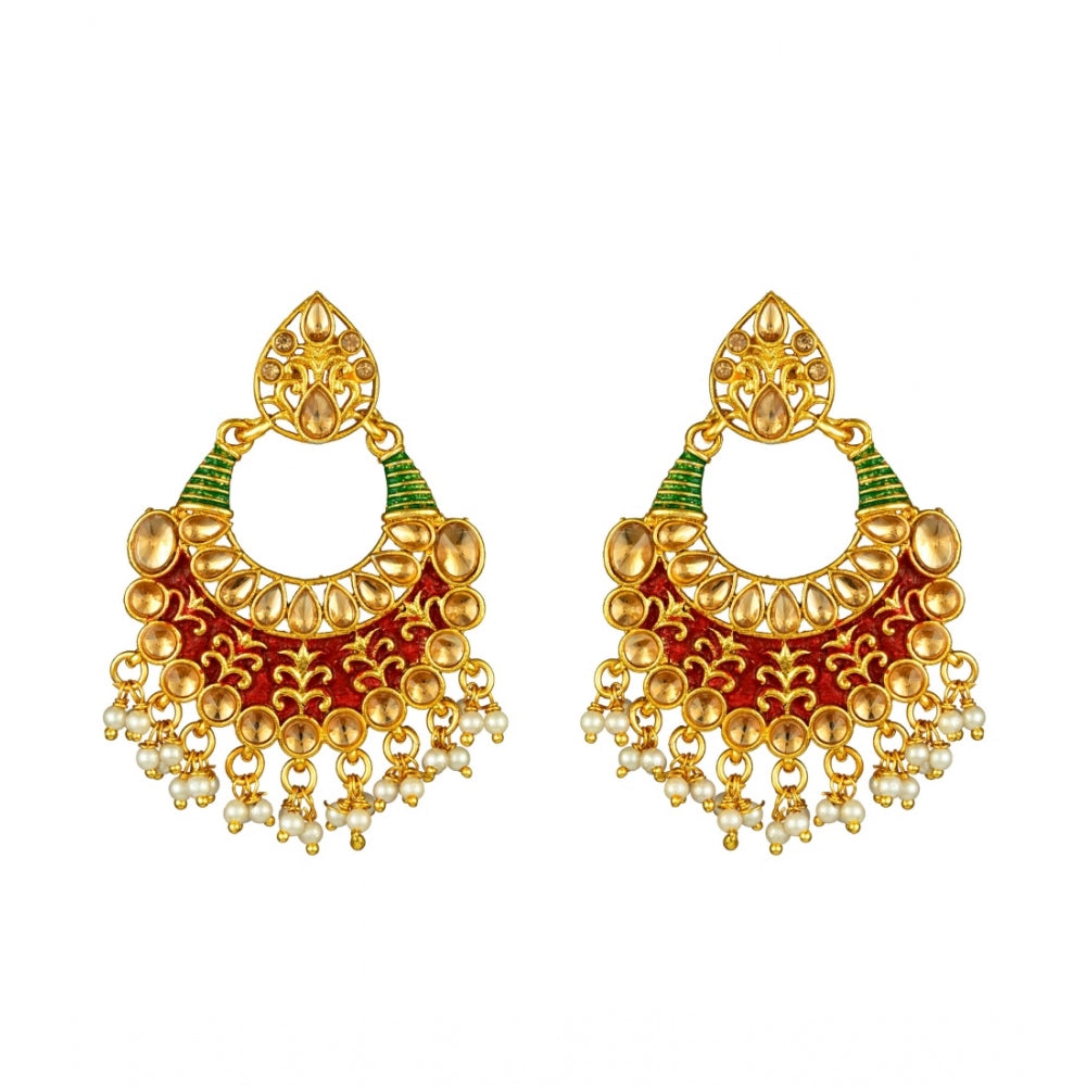 Women's Gold Plated Alloy Kundan Earrings & Mangtikka