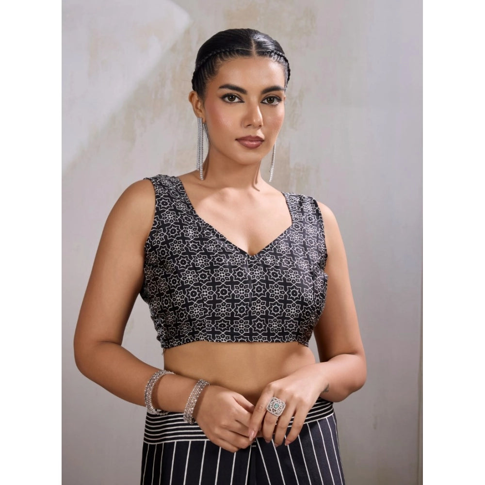 Women's Satin Crepe Printed Saree With Unstitched Blouse 5.5Mtr